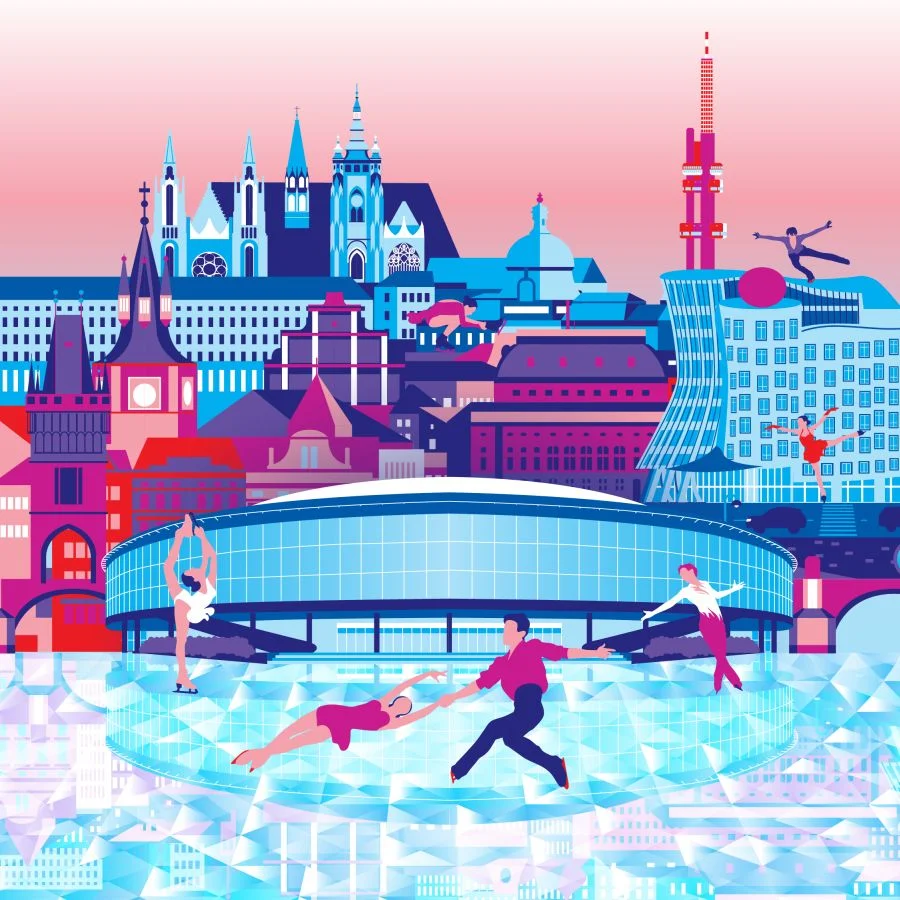 The Graphic identity of the ISU World Figure Skating Championships 2026 featuring Prague’s "hundred towers"