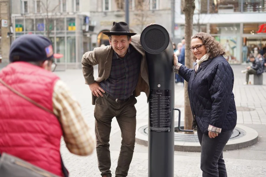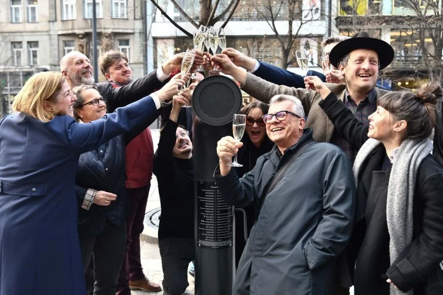 Since 2015, the ‘Piána na ulici’ association, founded by Ondřej Kobza, has been placing Poesiomats across the Czech Republic. ‘While the first Poesiomat on the Square of Peace Processes was mainly a jukebox for poetry, today it offers a wide range of audio experiences—from poems and songs to archival recordings and testimonies from contemporary witnesses, as well as authentic soundscapes,’ explained Ondřej Kobza. According to Kobza, Wenceslas Square in Prague was one of the first locations he wanted to equip with a Poesiomat. “It has taken years of work, so I’m really pleased that our already legendary tube is finally here, providing a small counterpoint to Myslbek’s monumental memorial. We hope that people will gather here in a similar way to how they meet at the equestrian statue (U koně), but perhaps now also at the Poesiomat,” he added with a smile.