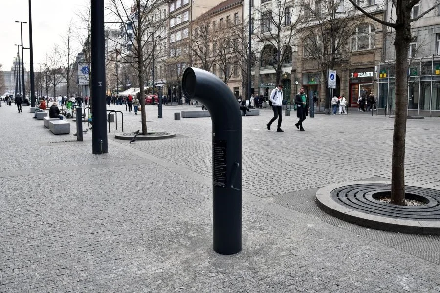 The structure resembles a ship’s vent or an underground railway exhaust pipe. It has a crank, and when turned, it sings and tells a story about the place where it stands. The Poesiomat was inaugurated at the lower end of Wenceslas Square on Tuesday. The sound device offers listeners twenty authentic recordings, including poems by Karel Šiktanc and Vítězslav Nezval, as well as archival recordings of key 20th-century events that took place on Wenceslas Square.