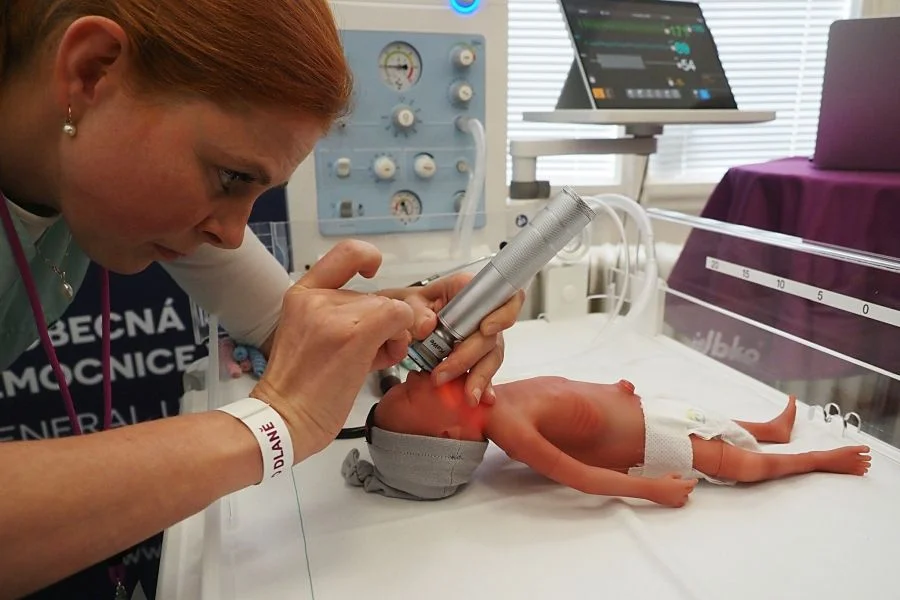 The premature baby simulator Paul, recently acquired by the General University Hospital in Prague (Všeobecná fakultní nemocnice v Praze), weighs 1,100 grams and measures 35 centimetres—accurately replicating the size of a baby born at 27 weeks of pregnancy. At this stage, the infant’s body is highly vulnerable to life-threatening complications. Paul allows trainee doctors and specialists to practise responding to critical situations where every second matters. Currently, it is the only simulator of its kind available in the Czech Republic.