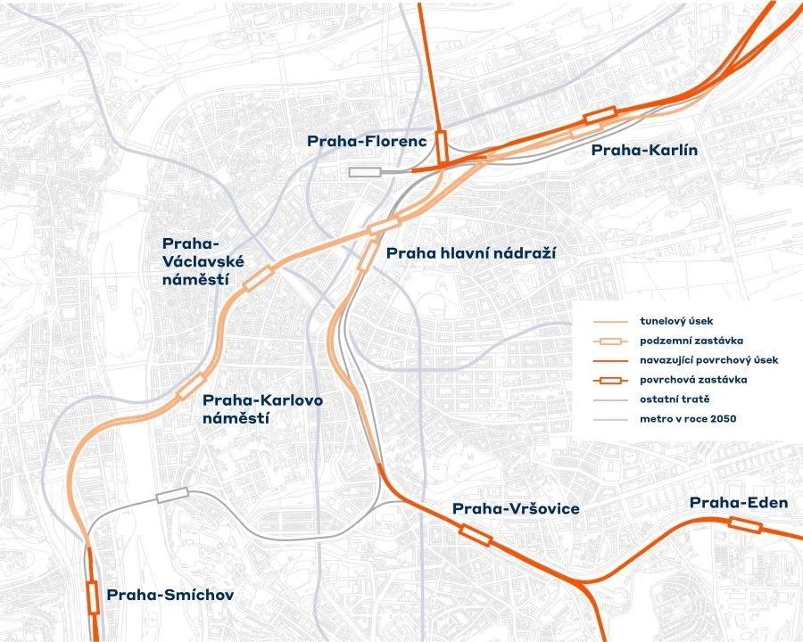 “The Central Commission of the Ministry of Transport has selected the most suitable option, which involves the construction of two 10.6-kilometer-long tunnels and five new stations in the center of Prague. The tunnels will intersect at two levels beneath the main railway station,” said Transport Minister Martin Kupka.