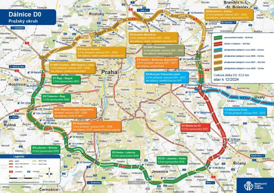 Meanwhile, work on a 12.6 km section of the Prague Ring Road between Běchovice and the D1 motorway began in December last year and is set for completion by 2027.