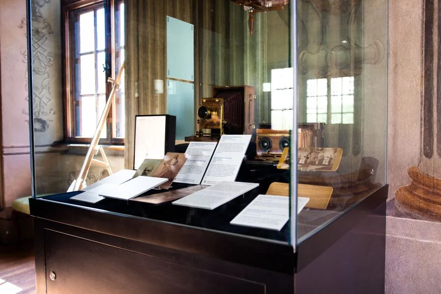 Further highlights include stereoscopic photographs from his time in the USA (1892–1895), as well as images of Native Americans from his estate. The exhibition is rounded off with historical cameras and a stereoscope from the National Technical Museum in Prague (Národní technické muzeum), which offer an insight into photographic technology of the era.