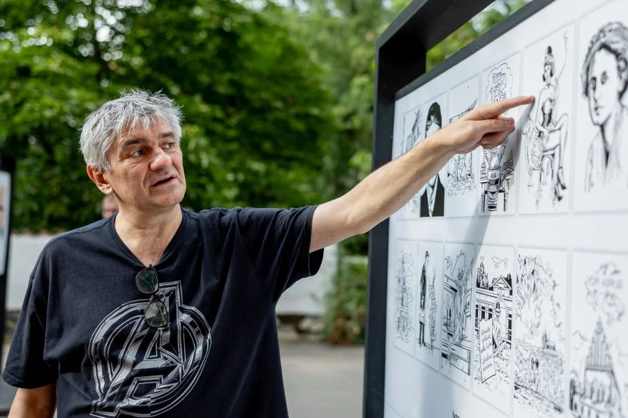 A walk through Portheimka Park or along the pedestrian zone near St Wenceslas Church (Kostel svatého Václava) is currently doubly worthwhile: until 31 August, exhibition panels showcasing the work of Czech cartoonist and comic artist Štěpán Mareš will be on display. The exhibition, entitled Mezi světy (Between Worlds), offers a multifaceted insight into the work of an artist who has been navigating different forms of expression and media for over three decades.
