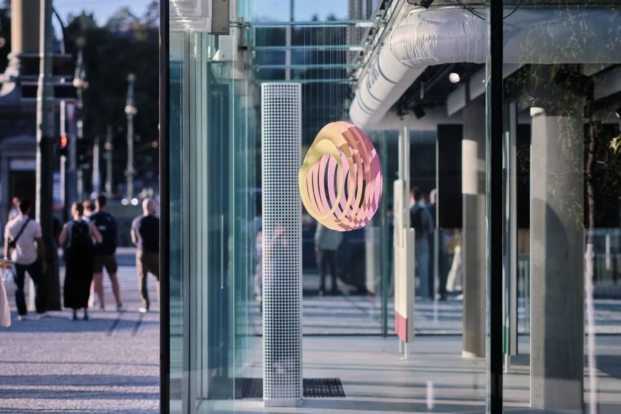 The gallery, designed by architect Marek Tichý (TaK Architects) as part of the Fairmont Golden Prague Hotel renovation, integrates seamlessly into its urban surroundings while serving as a striking communicative and symbolic element in its own right. Its transparent façade fosters a visual dialogue with the city, while the thoughtfully designed interior allows for flexible and complexly staged exhibitions.