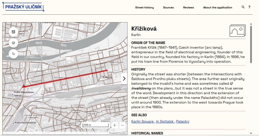 Prague now has a new digital application for anyone interested in the city’s history: Pražský uličník (Prague Street Lexicon). Developed in collaboration with the City Hall, the City Archive, and the Institute of Planning and Development (IPR), it is an online encyclopaedia documenting the origin of all Prague street names – from large boulevards and small alleys to squares, parks, and riverside promenades. In addition to information on street names, the project also offers historic maps, photographs, and an overview of former names of public spaces.