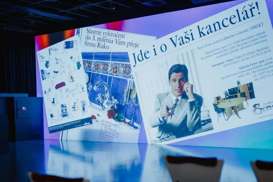 In addition to architectural models and historical photographs, the exhibition also incorporates multimedia elements. Archive material from Česká televize, photos, and sometimes ironic retrospectives on the 1990s convey the atmosphere of an era between innovation and excess.