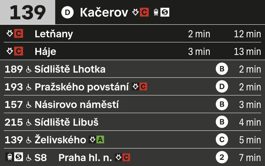 The design follows the visual identity of Čitelné Prahy and uses the typeface Prague Citizen, which will gradually become the central typographic element of the entire PID information system. Passengers thus receive clearly structured and visually consistent information throughout their journey.
